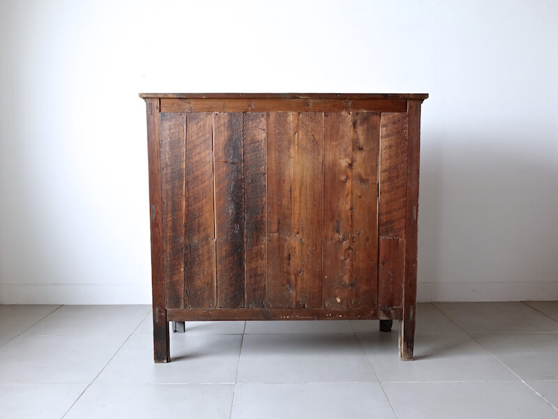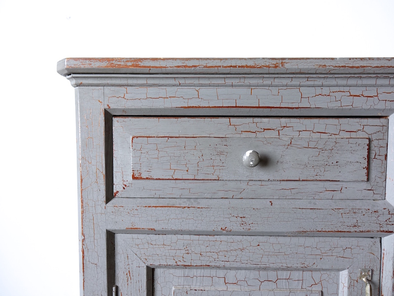 フランス製のシャビーなアンティークキャビネット。シンプルで使い勝手の良さそうな大きな引き出しが2つと真鍮取っ手の付いた観音開きのキャビネット収納。何と言ってもこの塗装のやれ感は経年の使用からでしか生まれないであろう美しいテクスチャーを持ちます。またこの手のアンティークキャビネットでは希少なサイズ感も魅力の一つです。