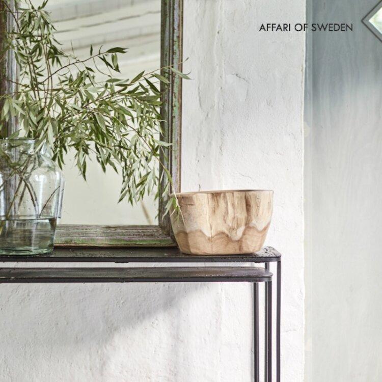 このような自然の素材感をあえて残し製品化をする北欧ブランドらしいユニークさと一点物ならではの美しさは置いてあるだけでオブジェとして絵になります。フルーツバスケット、鍵やアクセサリーなどを入れる小物入れやプランターなどリビング、ダイニング、エントランス、それぞれの置く場所にあった使い勝手と小物入れとしての美しい存在感をもたらせてくれそうなウッドボウルです。