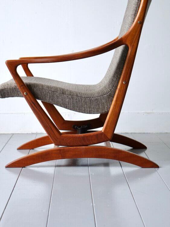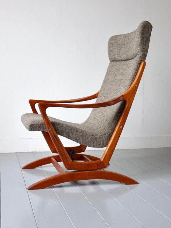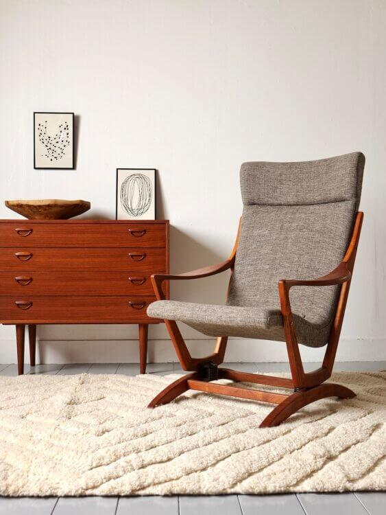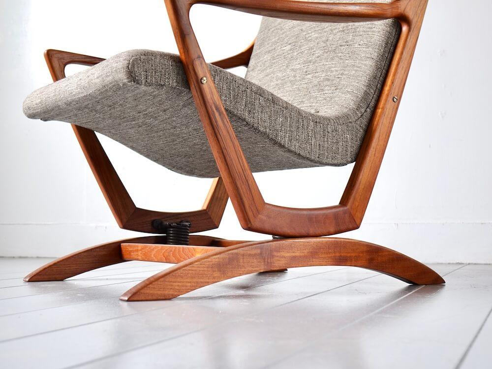 美しいチーク材のフレームが印象的なヴィンテージのロッキングチェア。